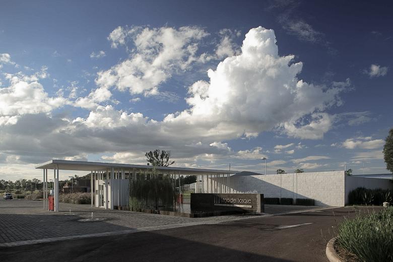 El 60% del área total del fraccionamiento está formada por jardines arbolados y tres lagos que no sólo facilitan la captación de aguas pluviales al subsuelo y la reutilización de las aguas tratadas, sino que también conforman un hábitat que facilita la convivencia recreativa de sus usuarios con una calidad superior para la interacción social. El concepto arquitectónico para el ingreso vehicular y peatonal de esta comunidad con características lúdicas es el de reforzar el ambiente incluyente que genera su configuración como parque habitacional. La ligereza de sus componentes estructurales y la horizontalidad de su esquema arquitectónico, confirman la importancia de la escala humana que se integra sutilmente a la amabilidad que propone el área verde que lo contiene.