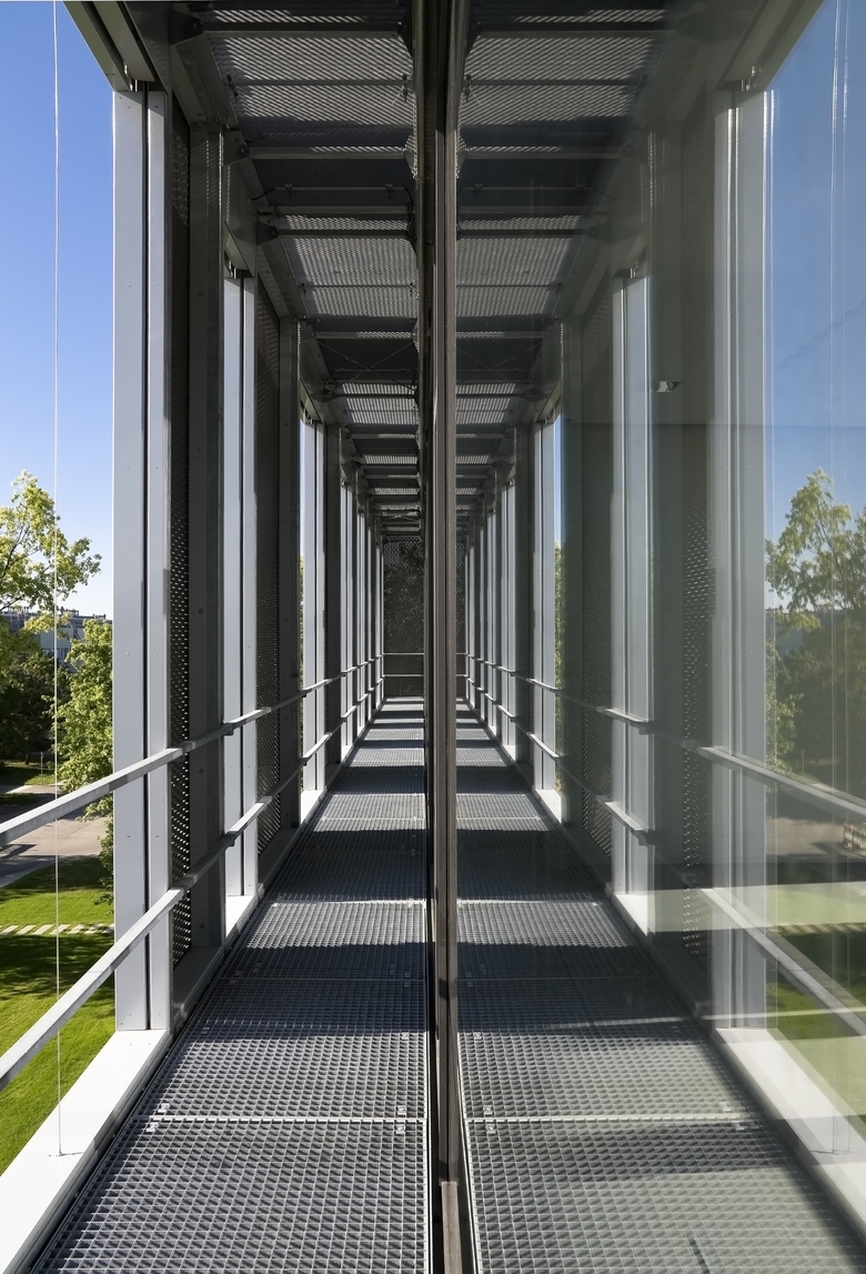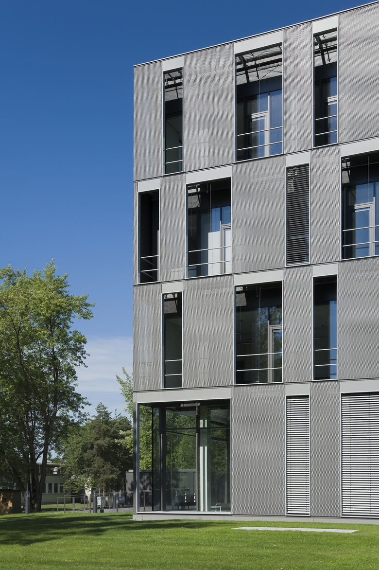 Der Entwurfsgedanke des Gebäudes beinhaltet die gestalterische unterschiedliche Ausformung der zwei sich unterscheidenden Nutzungen, nämlich den hochinstallierten Laborbau und den offeneren angesetzten Büro- und Lehrbaukörper. Durch den Wechsel von geschlossenen und partiell offenen Feldern der Fassade wird ein lebendiger Eindruck des zukunftweisenden Mulitfunktionsgebäudes erreicht.