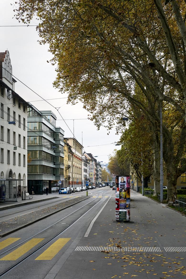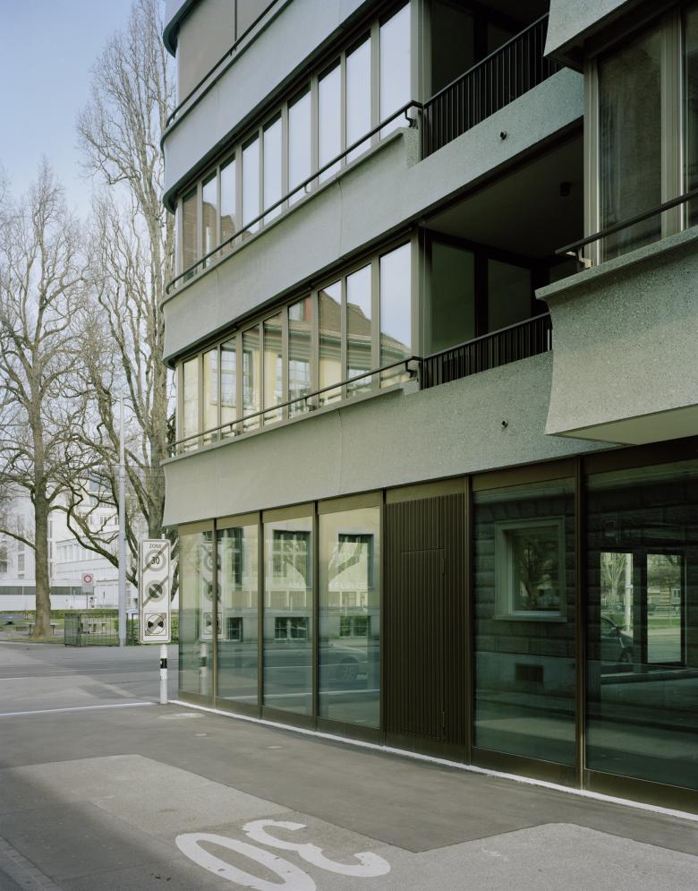 Der Entwurf zeigt Mietwohnungen mittleren Standards in zentraler Lage. Nach aussen präsentiert sich das fünfgeschossige Gebäude mit zwei Attikageschossen skulptural. Die zur Limmatstrasse gewandte Fassade tritt als die eigentliche Schauseite auf. Sie wird durch den Wechsel von polierten Beton- und Fensterbändern bestimmt. Den Kontrast zur horizontalen Gliederung der Fassade bilden die prägnanten Eckausrundungen, die das Gesamtvolumen zusammen halten. Das durchgehend verglaste Erdgeschoss ist einem Gastronomie- oder Gewerbebetrieb vorbehalten.