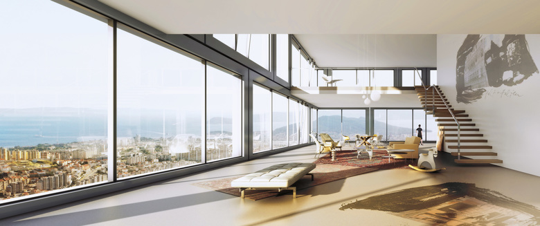 Um den Kern des Turms liegen pro Geschoss 4 bis 8 Wohnungen, manche als Maisonettes, mit Größen von 60 bis 220 Quadratmetern. Was eben mit den Breit- oder Schmalseiten von Containern verglichen wurde, sind Verbundkastenfenster. Die Lüftung einer jeden Wohnung erfolgt zum Teil auf natürliche Weise, einerseits durch Schiebetüren, die auf die Loggia führen, anderseits durch Fensterklappen. Aus den oberen Etagen geht der Blick nach Norden auf die Berge, nach Süden auf das Meer, nach Westen auf den Hafen.