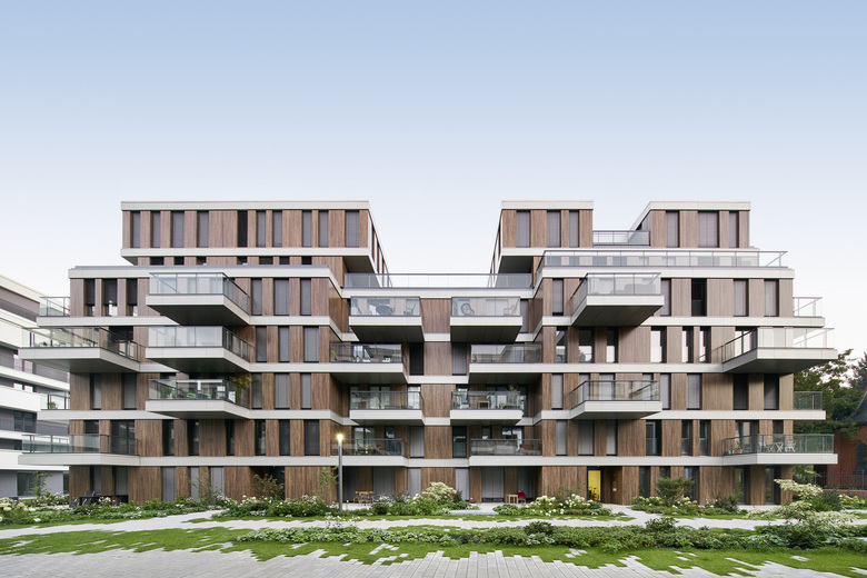 Dem Gebäude folgen nordwestlich 4, südöstlich 9 Reihenhäuser. Alle haben je 7 Geschosse, die beiden obersten Etagen in der Art von Penthäusern. Dass alle Reihenhäuser auf ihrer Hinterseite über Kleingärten verfügen – daher der Name The Garden –, ist für eine Anlage auf so zentralem Areal eine Seltenheit.