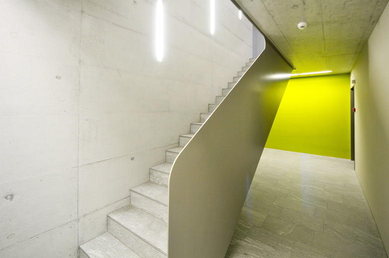 Das Gebäude erhält im Erdgeschoss die Empfangsräume und das Sekretariat der Schule sowie weitere gewerbliche Nutzung. In den Obergeschossen sind die Schulungsräume und Büroräume untergebracht. Durch die knappe Gebäudebreite von knapp acht Meter ergeben sich besonders attraktive Schulzimmer, welche sich über die ganze Gebäudetiefe ausdehnen, und damit von beiden Längsseiten natürlich belichtet werden können. Im Untergeschoss sind Nebenräume, Technik und Lagerräume, sowie eine Tiefgarage vorgesehen.