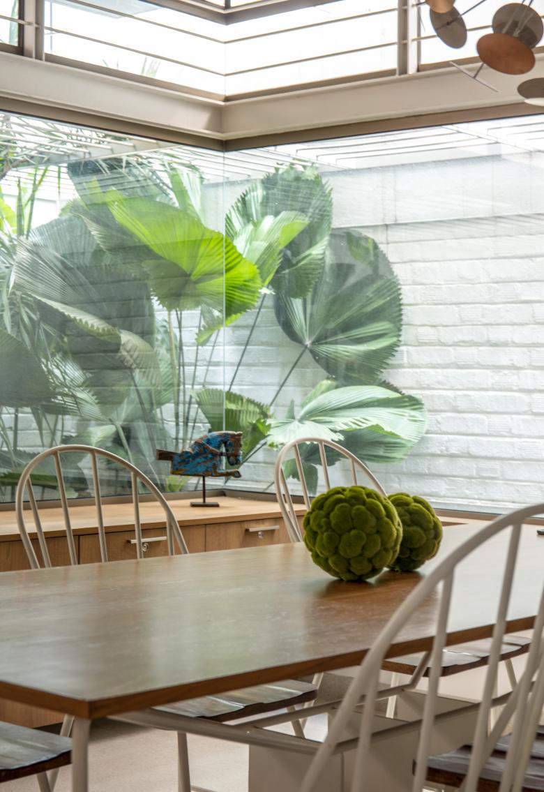Just like the garden and the light, this silhouetted foreground becomes the language through which each space perceives the other. Almost like a lens with its own colouration.