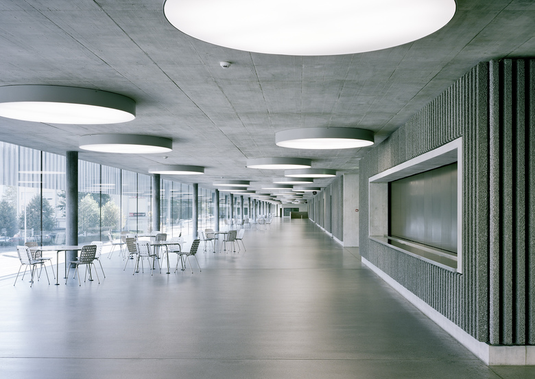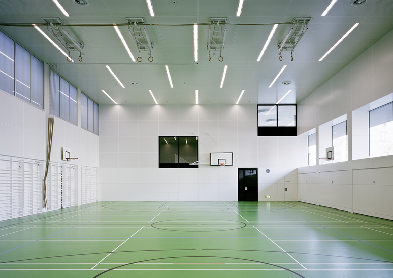 Nutzung: Klassenzimmer, Ateliers, Werkstätten, Turnhalle, Caféteria, Büros, Auditorium, Tiefgarage