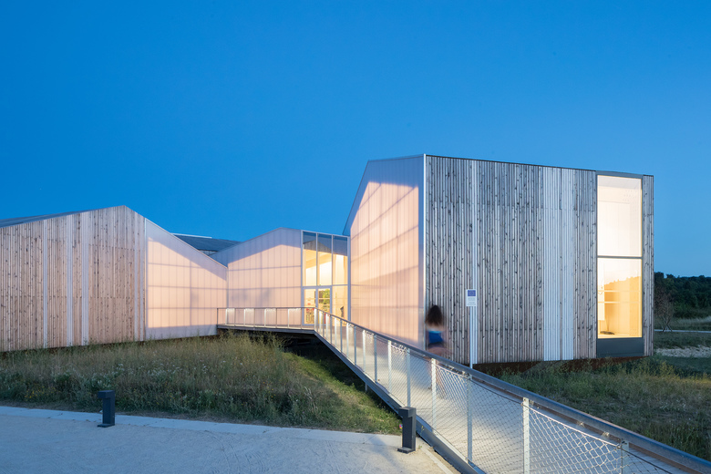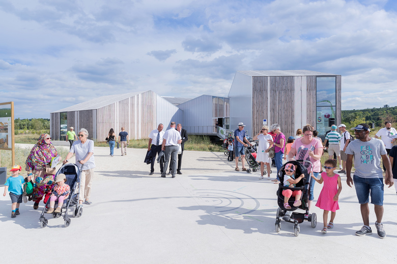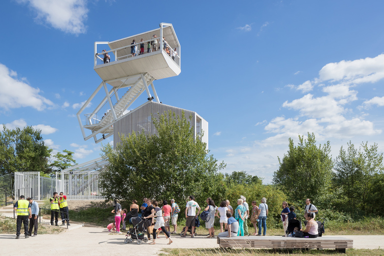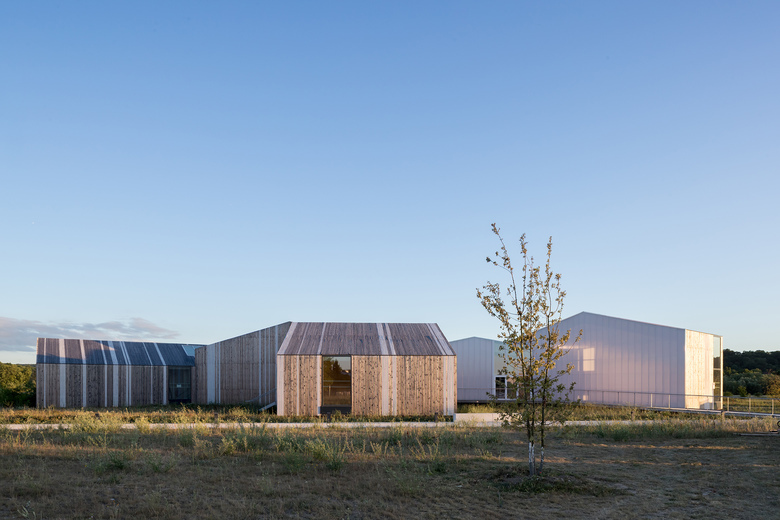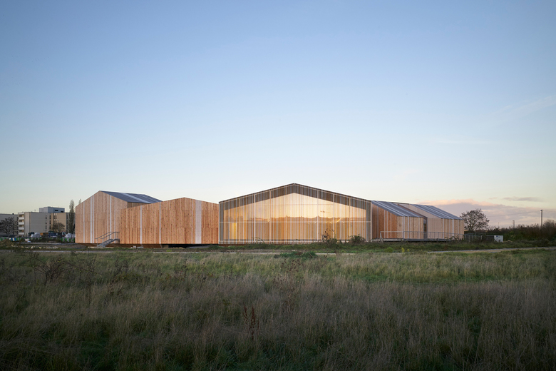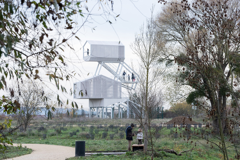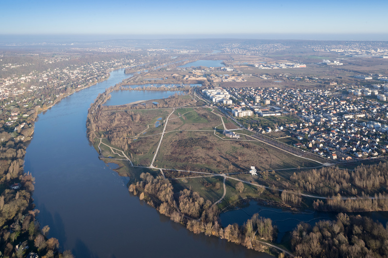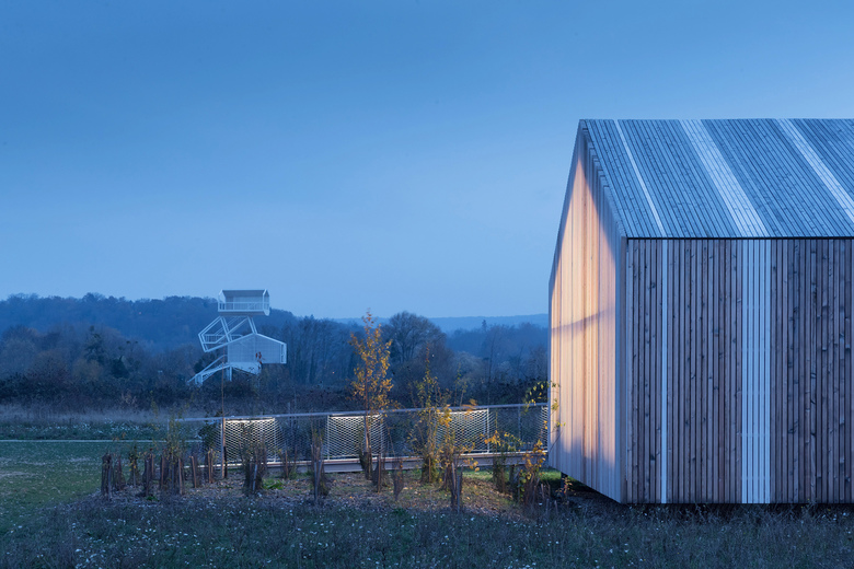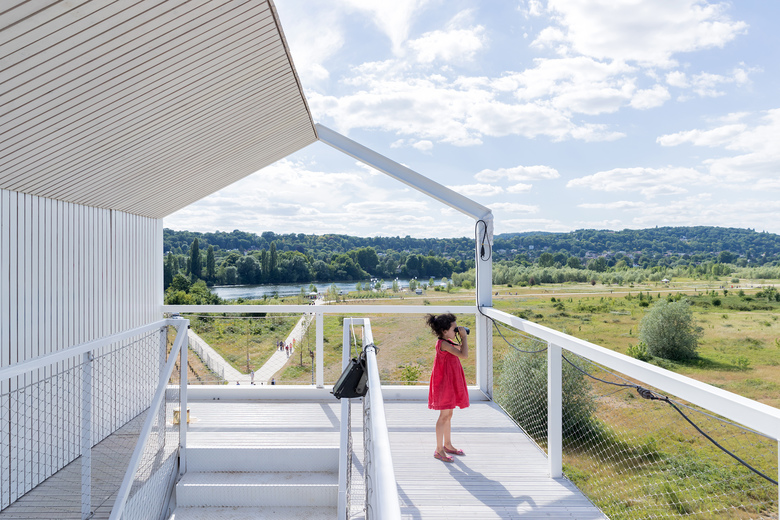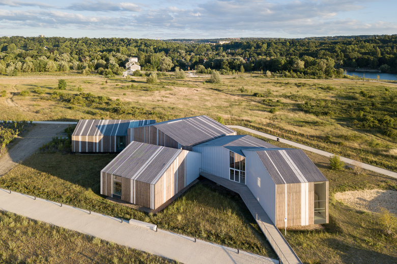 The series of buildings and pavilions are part of a new 113 hectare large public green space along the Seine river, in Carrière-Sous-Poissy, at the end station of the RER métro line A and close to Le Corbusier’s renowned Villa Savoye. The Park designed by Paris based landscape architects Agence TER will be an ecological showcase for local residents and a leisure destination for people living in and around Paris.