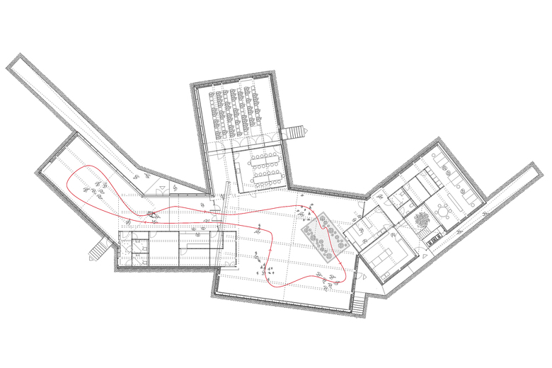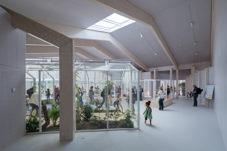 Among other public infrastructures like a visitor’s center, a restaurant („guinguette"), and an observatory, the competition brief included the construction of a museum to exhibit a large collection of insects, both living and conserved. For this the museum brief asked for public areas like exhibition spaces, an event hall and the welcoming area as well as for a series of non publicly accessible areas like offices, storage and designated spaces for raising different kind of insects.