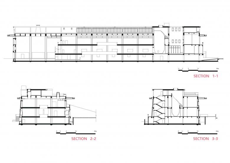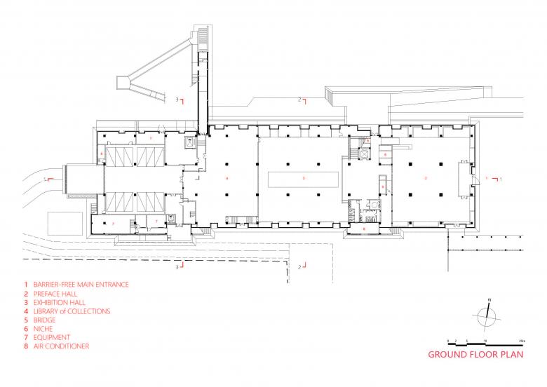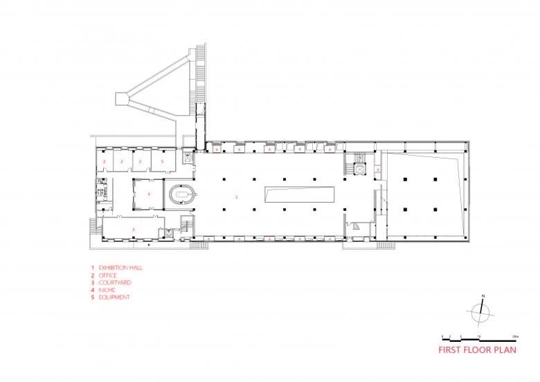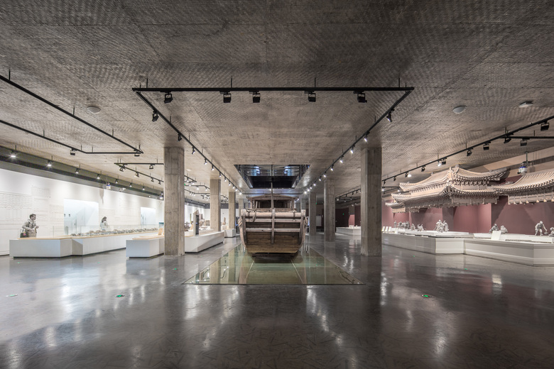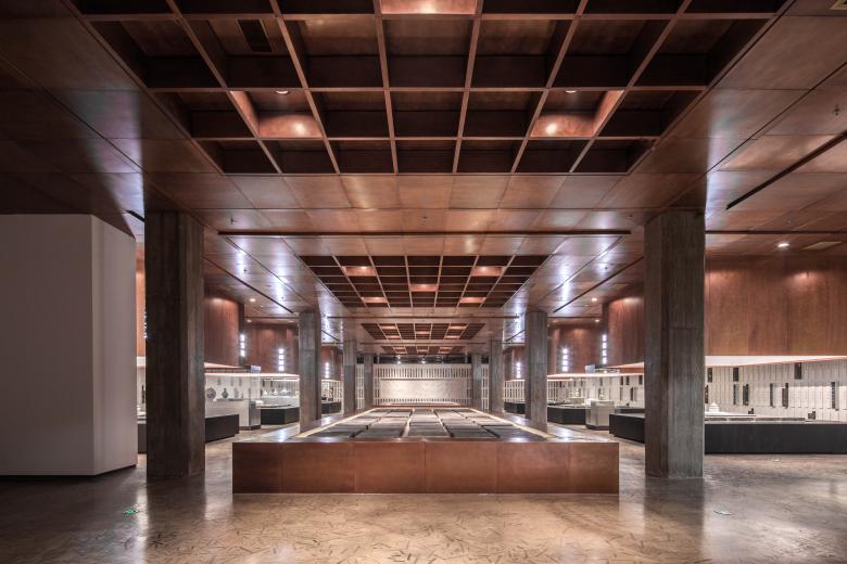 The museum is enclosed from all sides to form a centripetal space that echoes the inner space of traditional Chinese gardens for maximizing the core protection area. Since the north side faces a bridge, plenty of trees are planted to reduce noise. To the south of the museum, the community is blocked by the height of the mass. Stepping into the building, the production rooms and the kiln sites are well organized to guide visitors' sights. Twists and turns of circulation make scenes change with every step.
