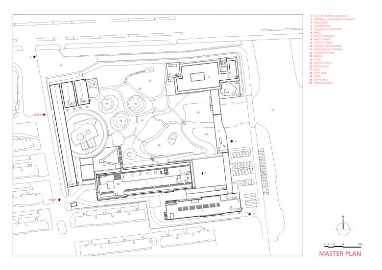Suzhou Imperial Kiln Ruins Park & Museum of Imperial Kiln Brick is located in Xiangcheng District in Suzhou, which is mainly for protecting historical ruins, and displaying cultural relic such as Jin Zhuan (金砖, literal translation is Golden Brick) and related cultural investigation and communication. In order to continuously preserve the precious historical relic and completely present Jin Zhuan manufacture process, the museum wants visitors to experience historical and cultural significances of Imperial Kiln Brick through architecture design and urban planning, which presents a large-span spiritual journey by elevating one kind of indigenous physical material to the Imperial most honorable palace.