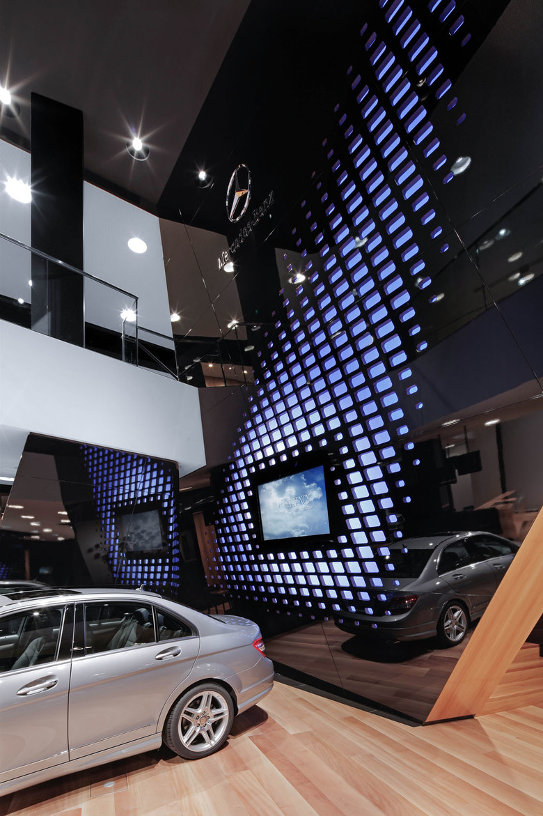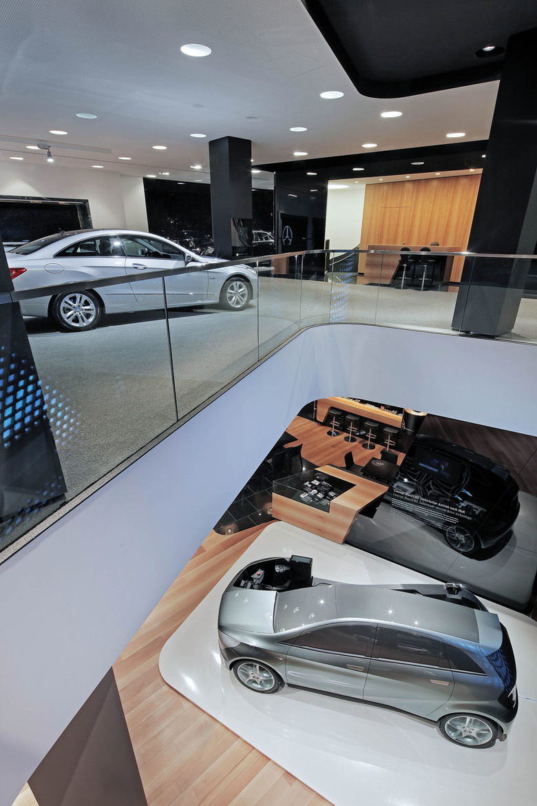 Konzipiert als „Botschaft“ der Automobilmarke im urbanen Umfeld, macht der Showroom den Puls der Marke und ihrer Produkte in allen Facetten erlebbar. Durch maximale Transparenz der Fassade präsentiert sich Mercedes-Benz in einem Schaufenster zur Stadt. Dort befinden sich auf zwei Geschossen über 1.500 Quadratmetern unterschiedlichste Präsentations- und Shopbereiche inklusive eines exklusiven Restaurants. Hier können die Gäste Unternehmenskultur und Markenwerte sehen, fühlen, anfassen.