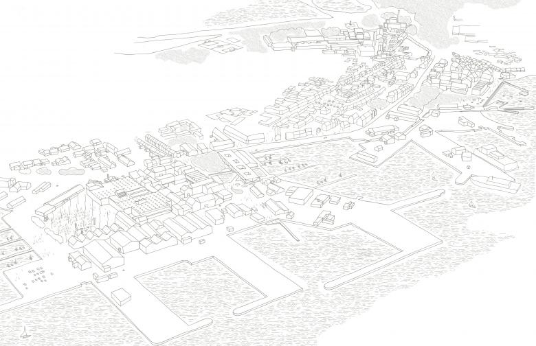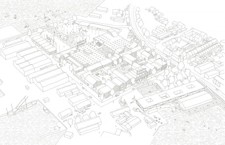 The proposal focuses on refining the existing by strengthening existing relationships and reviving discontinued industrial grounds with new content and attractive qualities. A disused factory becomes a meeting place to highlight the regional food culture, an abandoned railway station area develops into a seaside residential neighbourhood and former police building turns into a library. New places for wellbeing and culture are created as well as the city districts along the shore receive coastal defence to prevent flooding.