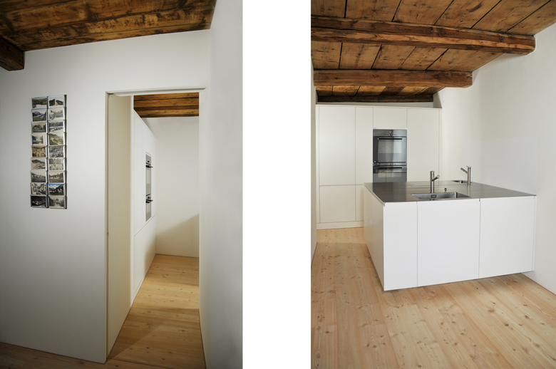 Umbau des 1. Obergeschosses in einem ehemaligen Engadiner Bauernhaus. In den 60er Jahren des 20. Jahrhunderts wurden auf dieser Etage 2 Wohnungen eingebaut. Diese wurden nun umgebaut. Es entstand eine grosse 4 Zimmer Wohnung und ein Studio. Viele Elemente aus früheren Zeiten wurden in die beiden Wohnungen integriert. Die neu hinzugefügten Elemente wurden in einer modernen Formensprache ausgeführt.