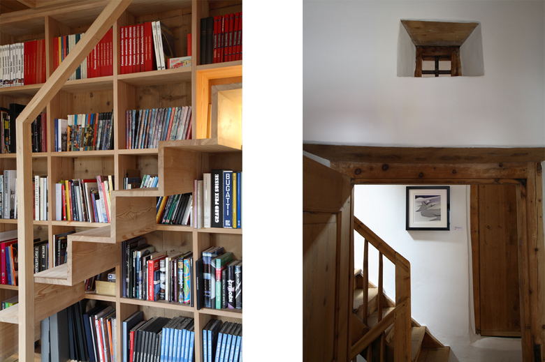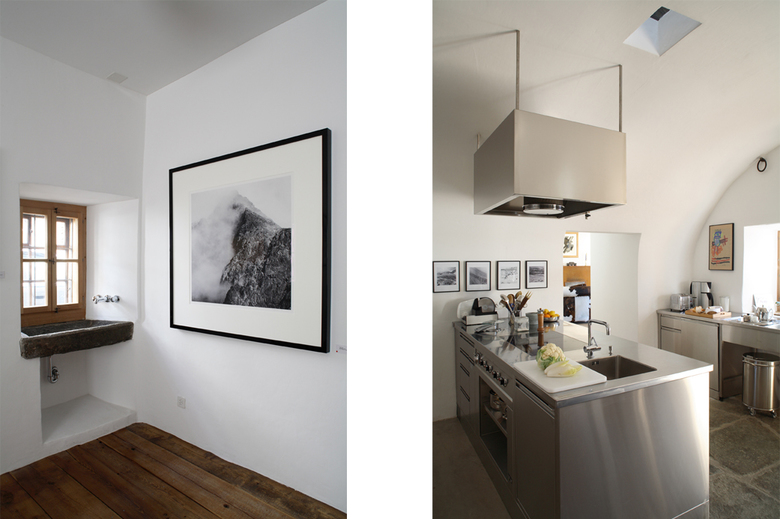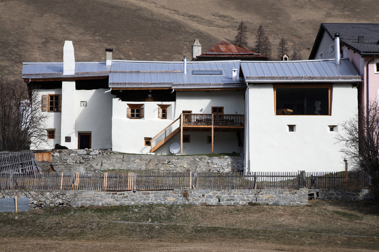 Das ehemalige Engadinerhaus wurde um die Jahrhundertwende des 20. Jahrhunderts, in eine Bäckerei umgebaut. Der Stall wurde weiter genutzt. Durch unseren Umbau wurde das Gebäude zur Galerie. Alle Einbauten mit wenig architektonischer Qualität wurden entfernt. Im Heustall wurde ein grosses Wohnzimmer eingebaut und die Holzbalken Richtung Inn wurde durch Glas ersetzt.