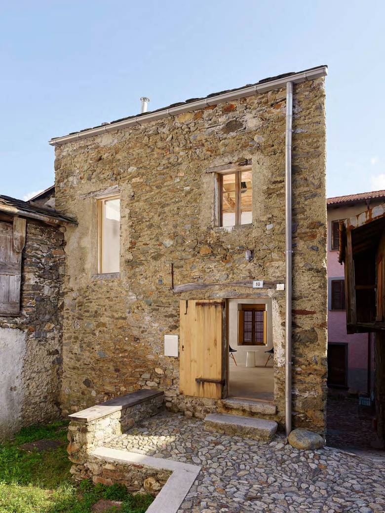 Wie bereits beim ersten Haus, wurde auch hier das Erdgeschoss mit Natursteinen gepflästert, wodurch sich der Boden drinnen wie draussen durch eine konsequente Materialisierung auszeichnet.