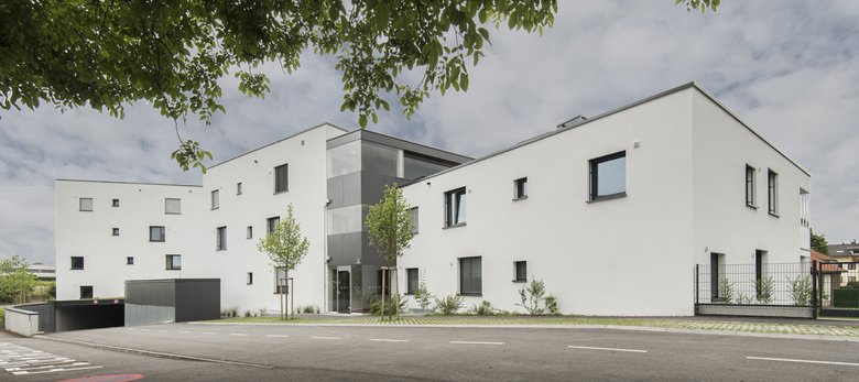 Die Einfahrt in die Tiefgarage erfolgt im nördlichen Teil des Grundstücks, wodurch auf der restlichen Fläche eine verkehrsfreie Oberflächengestaltung möglich wird. So entsteht ein großzügiger Grünraum mit einer Anbindung an das später geplante Nachbargrundstück.