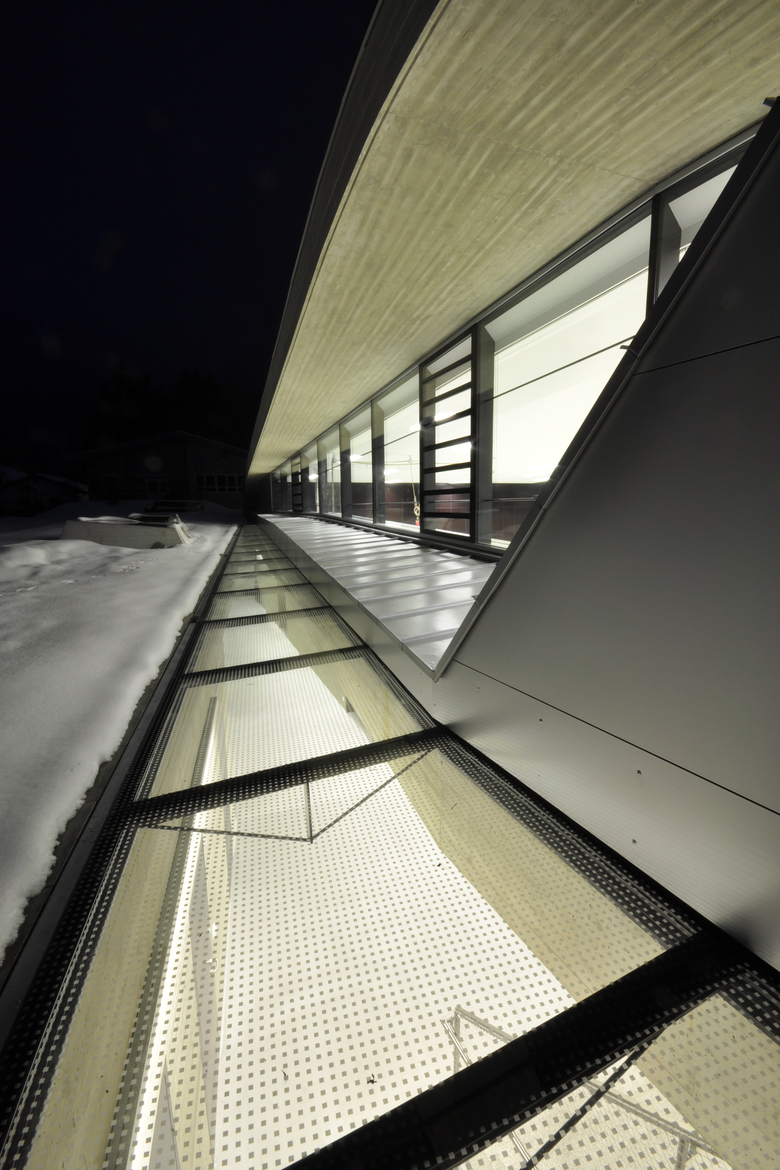 Das begehbare Glasband und die trichterförmigen Oberlichten belichten das Untergeschoss.
