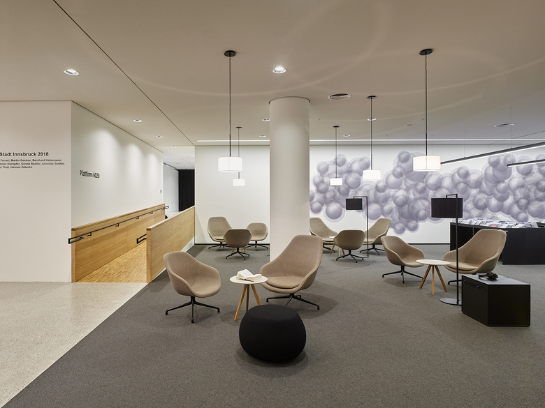 Mit dem Neubau der Stadtbibliothek in der Sockelzone des P2 gewinnt eine wichtige öffentliche Institution an Bedeutung und die angrenzenden Stadtteile erhalten eine Verbindung in Form eines attraktiven städtebaulichen Gelenks. Das Konzept der neuen Stadtbibliothek Innsbruck versteht die Bibliothek als öffentlichen Raum, als Ort des Lernens und der Begegnung. Trotz oder gerade wegen der rasanten Digitalisierung gibt es einen starken Trend zum Treffpunkt außerhalb der eigenen Wohnung. Deshalb sieht das Raumkonzept vor, dass 50% des Raums für Medien und 50% als Aufenthaltsfläche genutzt werden können. Die Stadtbibliothek verschafft Zugang zu Information, Bildung und Kultur für alle Stadtbenützer/innen. Mit einer breiten Nutzungsvielfalt wie Lern und Lesebereiche, einer Kinderbibliothek, einem Lesecafe, einem Veranstaltungsraum, einer Stadtgalerie und Räumlichkeiten für ein Stadtmodell erweitert die Bibliothek ihre Kernaufgabe und wird zu einem höchst integrativer und sozialer Ort.