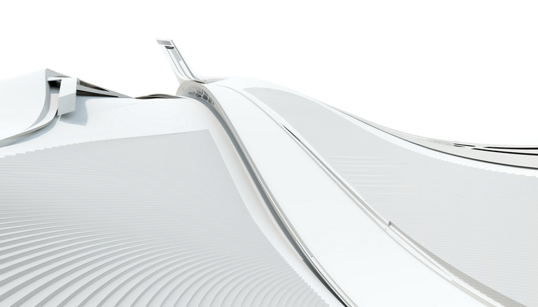 Excerpt of the competition jury: The proposal is characterised by an ”aerodynamic” design, where all the elements fit together in a unified, plastic form of great elegance. In design terms the proposal appears as the competitions most successful. It appears as a refined, highly developed design where the knoll building and the inrun flow into each other in one unified form.The result is a monumental ski arena that grows out of the landscape. The adopted architectural language is consistent and includes the design as a whole, from public flows, commentators boxes, judges towers and stands...