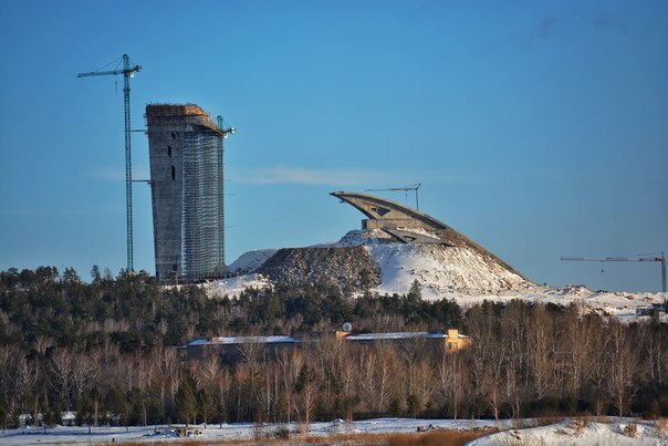 Die Sprungschanze in Kasachstan besteht aus einem Turm und zwei Schanzen, was eine absolute Neuheit bedeutet.