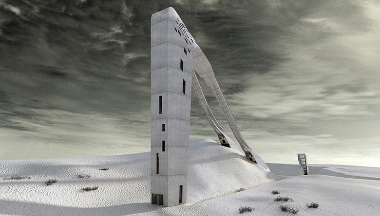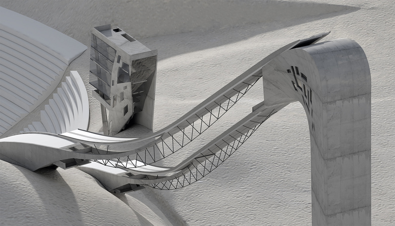 Die neue Schanze ist eine skulptural klare, sich selbstverständlich generierende Form aus den zwei Kurven der Anlaufspuren.