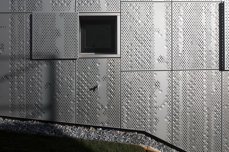 Das Gebäude ist eine Stahlbetonkonstruktion mit einer hinterlüfteten Metallfassade. Die Perforierung und Prägung der reflektierenden Metallhaut verleiht dem Gebäude feine Texturierung, welche durch fixe als auch manipulierbare Paneele Lichtdurchlässigkeit und Transparenz berücksichtigt. Richtung Süden ermöglichen raumhohe Glaselemente einen Blick über die ganze Stadt.