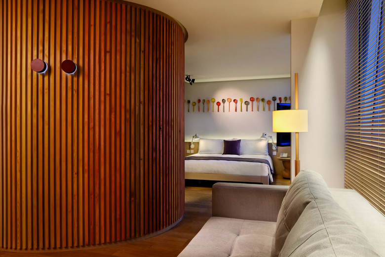 Nine suites, each one unique, and each one 100% Lagranja, full of details made exclusively for this project. The nightstands turned from oak wood blocks, or the wooden spoons carved by hand that are both a decorative element and a gift the guests can take home.