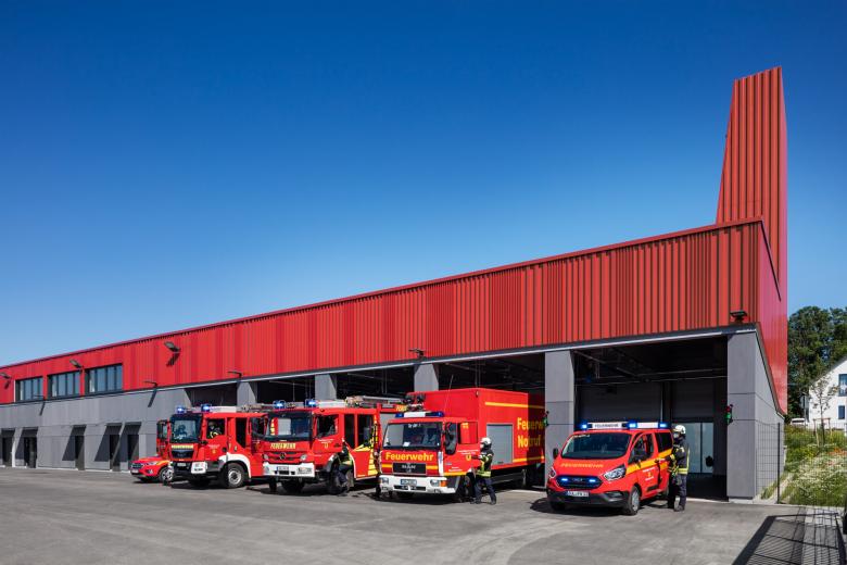 Mit dem Entwurf des Neubaus vereinen wir zwei Einrichtungen der Stadt Titz. Aus verschiedenen Standorten werden die zwei Institute der freiwilligen Feuerwehr an diesem Standort mit dem Baubetriebshof der Stadt zusammengelegt.