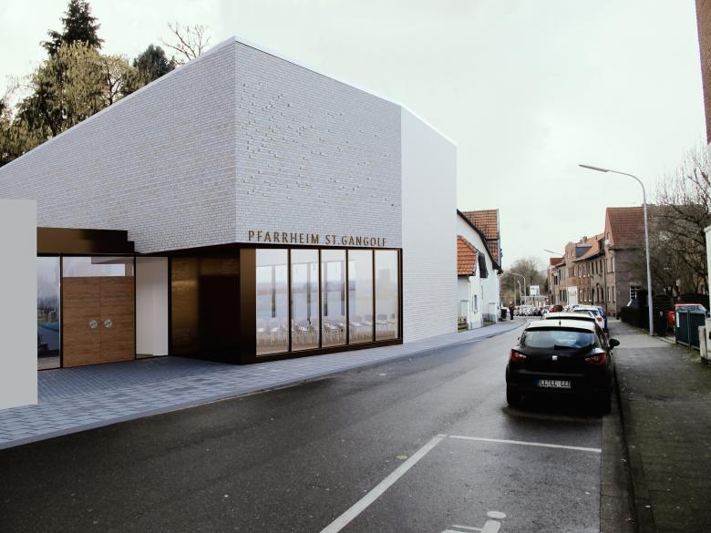 Im historischen Kern der Stadt Heinsberg entsteht mit dem Neubau des Gemeindezentrums St. Gangolf eine markante Adresse für die Pfarrgemeinde. Mit einer massiven Klinkerfassade in einem hellen Farbton fügt sich der Neubau maßstäblich in das städtebauliche Umfeld und das historische Ensemble ein. Durch eine denkmalgerechte Sanierung und einen Umbau wird die angrenzende Propstei zukünftig als Verwaltungsgebäude genutzt. Der Neubau des Gemeindezentrums und der Umbau der Propstei werden zusammen in der Planung betrachtet soll aber auch eigenständig funktionieren.