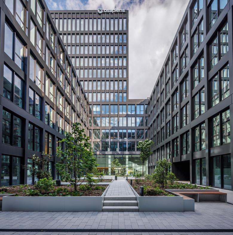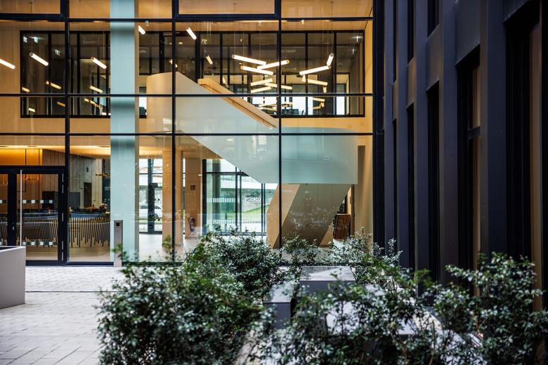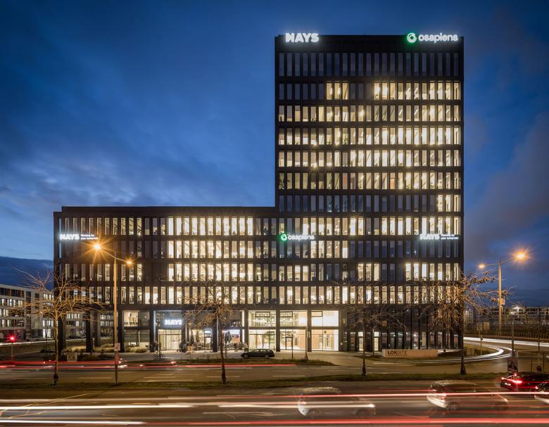 Alle Office-Bereiche zeichnen sich durch eine hohe räumliche Flexibilität aus. Eine aktivierte Mittelzone lässt eine Vielzahl agiler Arbeits-möglichkeiten zu um flexible Arbeitswelten für wechselnde Anforderungen zu bieten. Kommunikatives Arbeiten und Projektarbeit in Gruppen findet in größeren Flächen statt. Unterschiedliche Rückzugsmöglichkeiten und Besprechungsinseln bieten Raum für konzentriertes Arbeiten oder kurzfristig anberaumte Zusammenkünfte. So werden ein dynamisches Arbeiten und Kommunikation gefördert und Beziehungen gebaut. Besprechungsräume, Teeküchen und Cafeterias sind wichtige Räume für Erholung und Austausch zwischen den Mitarbeitern. Sie liegen nach Innen zum Hof ausgerichtet und stellen einen weiteren wichtigen Ort der Kommunikation dar.
