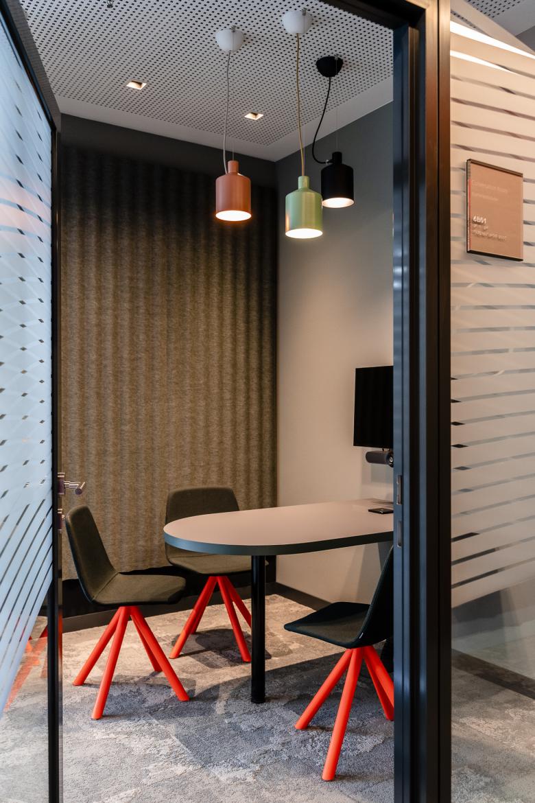 Entsprechend der neuen Anforderungen und der Microsoft Guideline wurde das innenarchitektonische Konzept erstellt (Definition von Besprechungs- und Kommunikationsräumen, vollen Arbeitsplätzen, Workpoints, Rückzugsorte…).