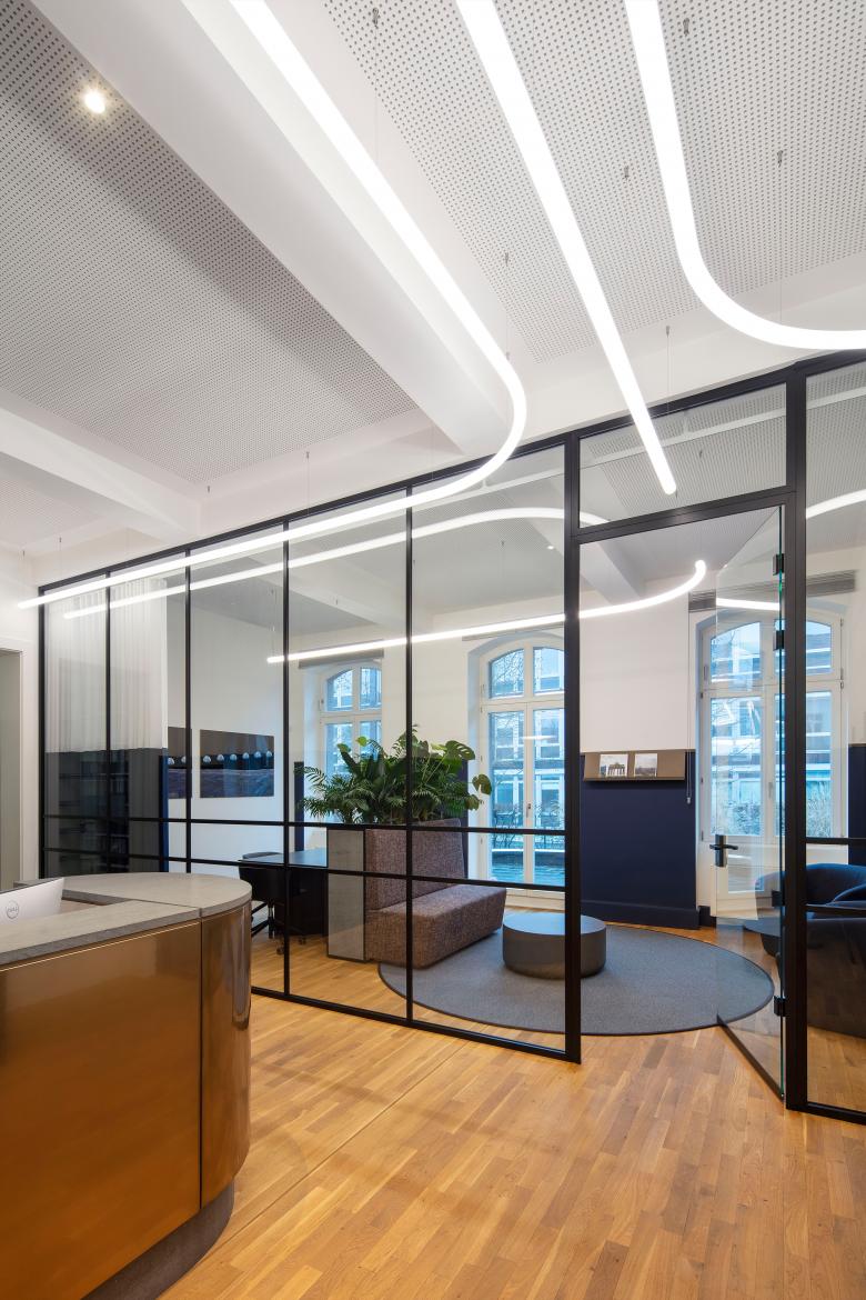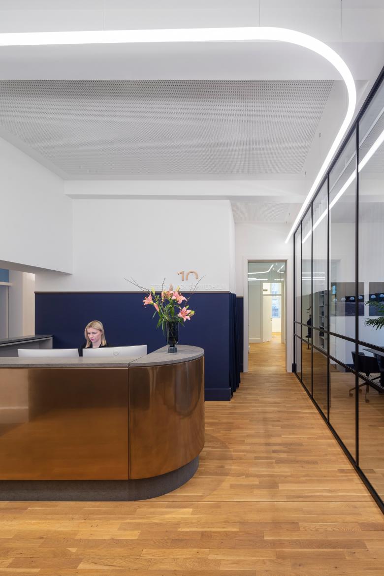 LEPEL & LEPEL hat für die Kanzlei Streck Mack Schwedhelm mit Sitz in Köln-Junkersdorf ein funktionales und kommunikatives Raumkonzept mit repräsentativen Sonderzonen umgesetzt, das den Bedürfnissen der Mitarbeitenden und den Anforderungen einer agilen Arbeitswelt gerecht wird. Gleichzeitig wird das denkmalgeschützte Bestandsgebäude von 1936, ein ehemaliges Offizierskasino, respektiert. Klassische Bestandselemente werden behutsam aufgenommen und in Kombination mit modernen Elementen neu interpretiert.