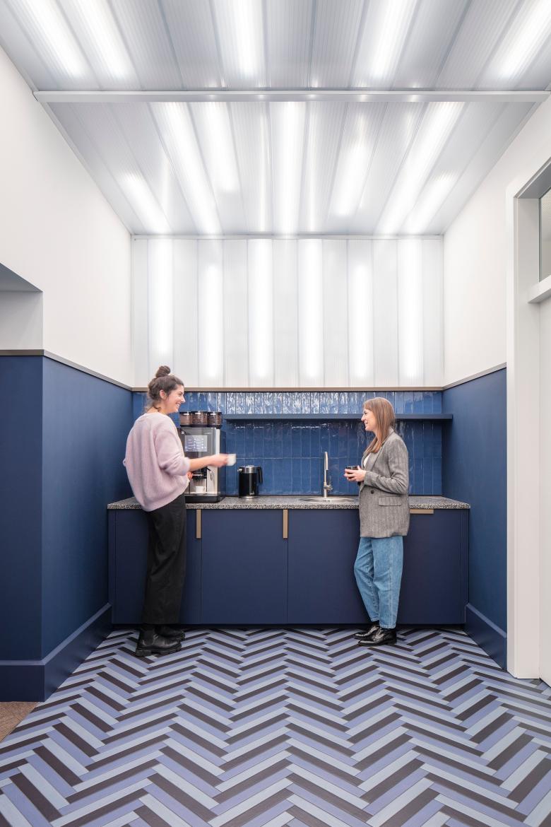 Ein ganzheitliches Gestaltungskonzept über alle Etagen hinweg setzt die Leitidee "BIG & BEYOND" um, die die Werte des Unternehmens widerspiegelt und auf über 1400 qm einen identitätsstarken Ort entstehen lässt.
