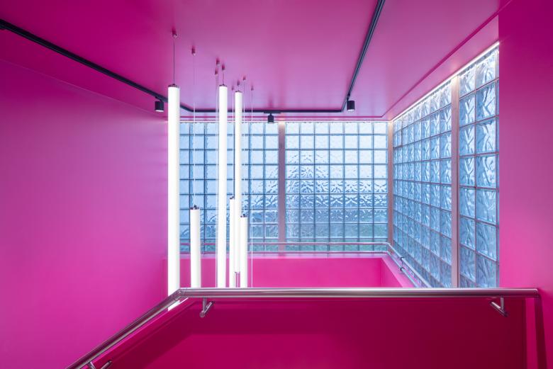 Das Magenta Loft erweitert den starken Markenauftritt im Erdgeschoss um die freundlich lässige Atmosphäre der Beratung in der ersten Etage. Grafiken mit regionalen und überraschend floralen Themen kommen von der Agentur GROSSE8.