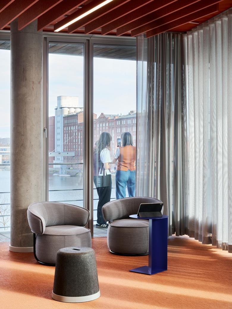 Der Entwurf „Lieblingsplatz 2.0“ für die Adresse im Duisburger Innenhafen schafft Raum und Freiraum für kommunikativen Austausch. Gleichzeitig ist das Konzept das Ergebnis der Bedarfsermittlung. Mit Küche und Urban Gardening Area sind LEPEL & LEPEL den Ritualen der Mitarbeiter*innen nachgegangen. Entstanden sind lebendige Treffpunkte für Kreativität und Teambuilding. Glastrennwände sorgen für Struktur und stellen gleichzeitig Transparenz und Blickbeziehungen her.
