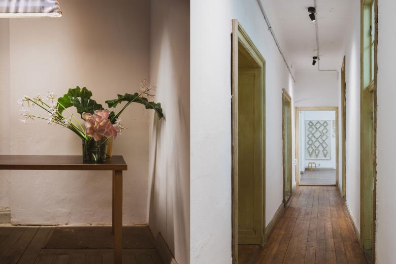 Innovatives finnisches Design trifft hier auf Spuren und Relikte aus vergangenen Zeiten. So gesellen sich extravagante Mode, handgeknüpfte Teppiche und moderne Leuchten zu nostalgischen Tapeten, alten überlagerten Wandschichten und abgeblätterten Farben. Die temporäre Ausstellung erfasst den Moment und die Stimmung einer abenteuerlichen Begegnung zwischen Vergangenheit und Aufbruch.