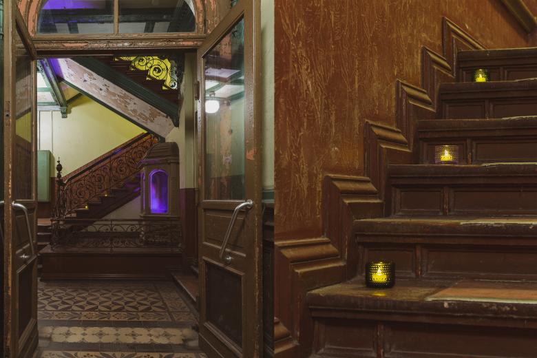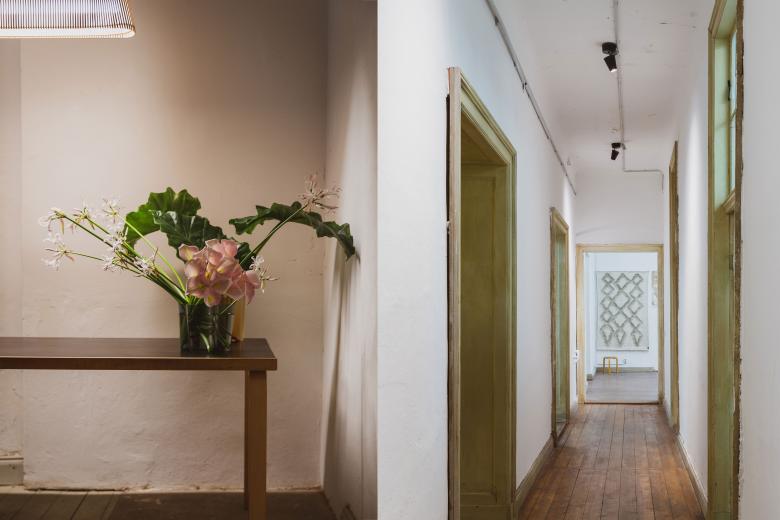 Über das prächtige Treppenhaus mit Fliesenornamenten und einer Holztreppe mit schmiedeeisernem Geländer gelangt man in das sogenannte „schöne Geschoss“ des großbürgerlichen Wohnens. Die Decken mit fast vier Metern Höhe vermitteln eine Großzügigkeit. Durch Sichtachsen sind die Räumlichkeiten miteinander verbunden. Jeder einzelne Raum ist im Zusammenspiel mit den ausgestellten Produkten auf seine eigene Art inszeniert.