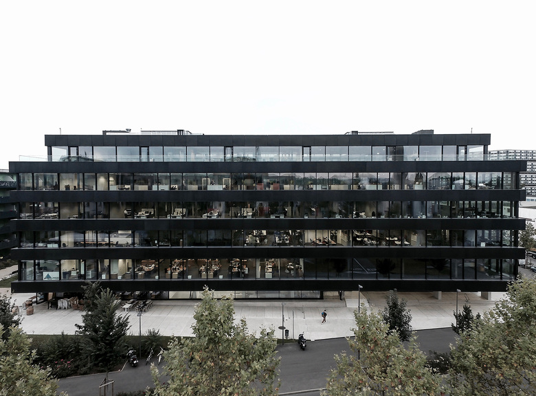 Les 13’400 m2 de surface brute de plancher s’adressent à priori à un utilisateur unique. Répartis sur 6 niveaux hors sol (R+4+A) les 2 premiers étages s’organisent autour d’un atrium commun, et sont conçus pour accueillir les affectations ouvertes telles que l’entrée, l'accueil, la cafétéria, les salles de réunion (etc). Aux niveaux supérieurs, la cour à ciel ouverte regroupe les étages optimisés pour une flexibilité maximale. La trame de façade de 1.5m se conjugue avec une épaisseur d’étage de 12.40m, permettant tantôt les cellules unitaires, tantôt les open-spaces ainsi que les combi-offices !