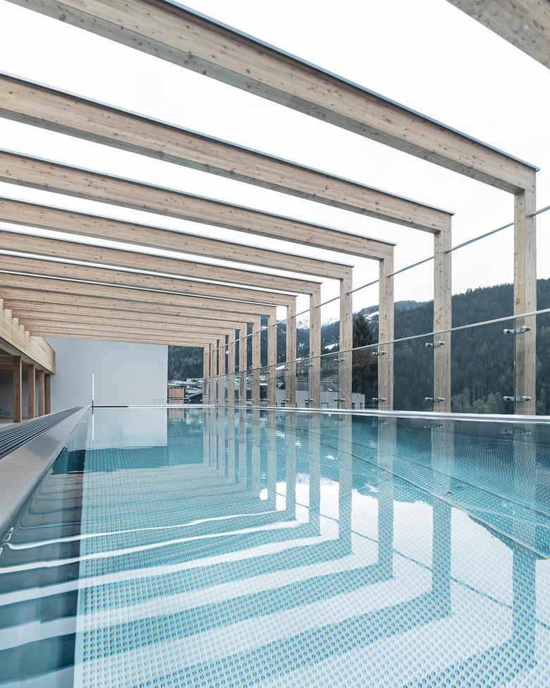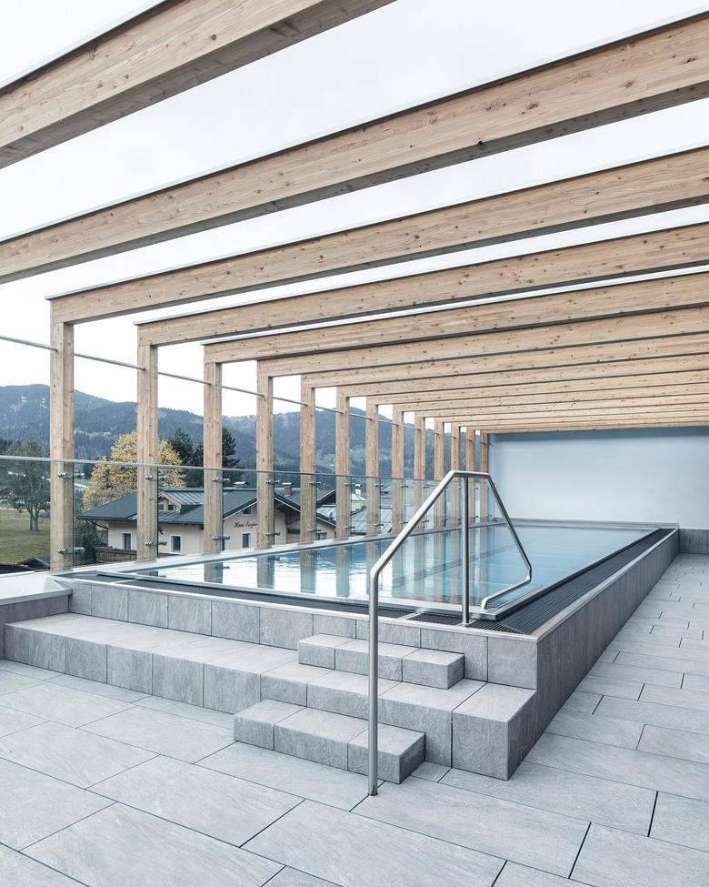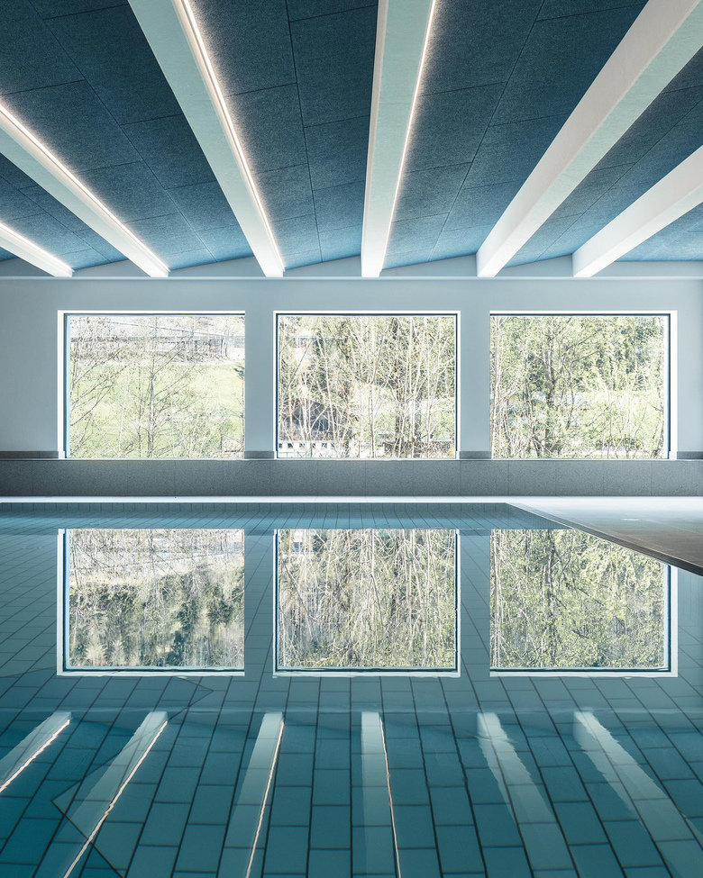 Die bestehenden Räumlichkeiten der Freizeitanlage des Tauernhofs aus den 90er Jahren erhielten ein neues Raumkonzept. Neu geplant und errichtet wurden Hallenbad, Sport- und Wellnessbereich inkl. Saunen, Sanitärräume sowie eine großzügige Dachterrasse mit Außenpool. Der aufgesetzte neue Baukörper ist von den Außenkanten des bestehenden Gebäudes abgerückt und bietet daher wenig Einblicke dafür entspannte, ruhige Ausblicke.