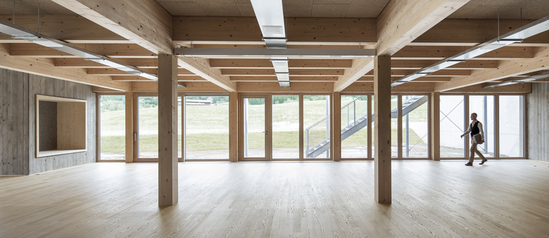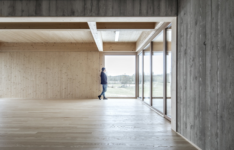 Mit einem offenen Raumfluss und maximaler Flexibilität wurden Raumsequenzen entwickelt die unterschiedlichen Qualitäten und starke Bezüge untereinander aufweisen. Darüber hinaus vermitteln die Räume auf großzügige, zum Teil gedeckte Terrasse oder in den davorliegenden Garten.