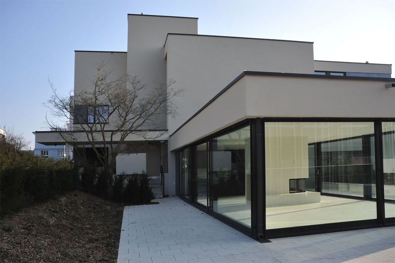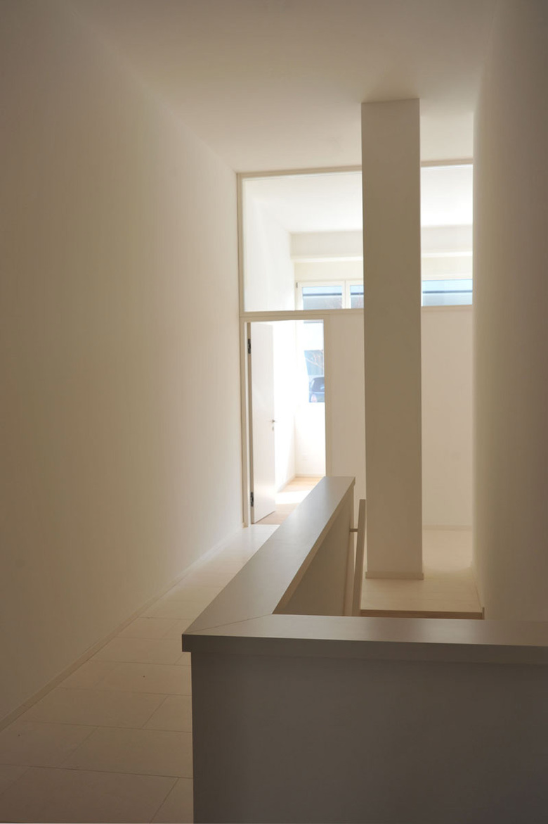 Das Haus aus den sechziger Jahren war ursprünglich ein Wohnhaus mit Gewerbe im Erdgeschoss. In den achtziger Jahren wurde im Garten ein Schwimmbadpavillon mit Fertigbauteilen angebaut. Jetzt wurde es in ein reines Wohngebäude mit sieben räumlich sehr unterschiedlichen Wohnungen umgebaut. Im ehemaligen Gewerbeteil im Erdgeschoss beträgt die Raumhöhe der neuen Wohnungen annähernd vier Meter, die Obergeschosse haben ihre konventionellen Raumhöhen beibehalten.