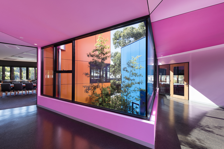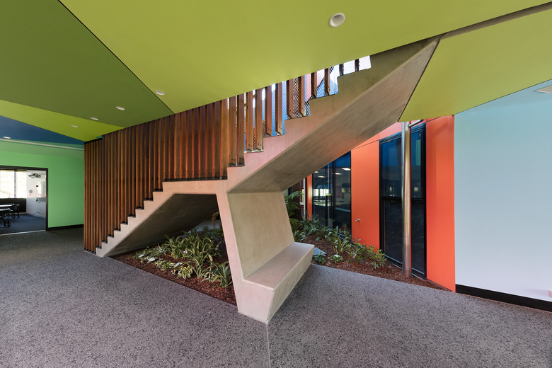Staff work stations are peppered throughout the facility; the lower levels are generally multiple-use teaching spaces, the upper levels predominately science focussed. Provision for outdoor informal gathering of students is provided throughout the complex.