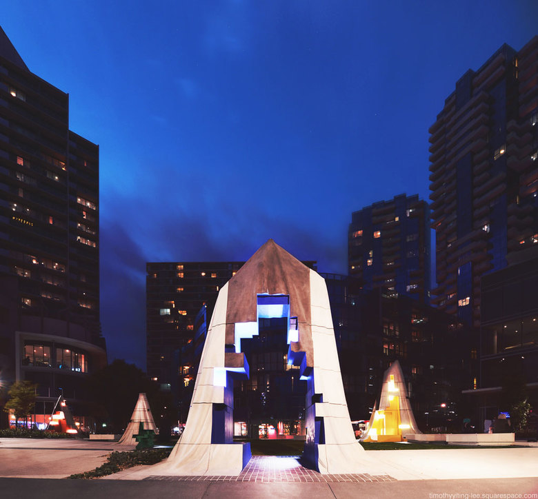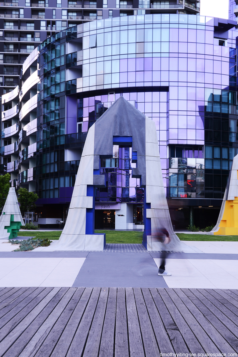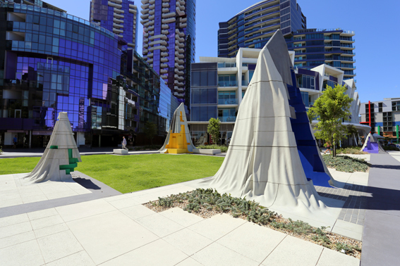 ……the Docklands plan is inextricably linked to the great grid of Melbourne, So with this in mind myself, MCR and Occulus began to explore the idea of using the original Hoddle Grid and its subdivisions as the pattern for the terrain or what we began to refer to as a `concrete rug’ that was laid across the site…... and started to look at the public sculptures around the city…. Using some of these monuments as hidden forms, as objects from the archive, under the rug might work as a way to create the topography.