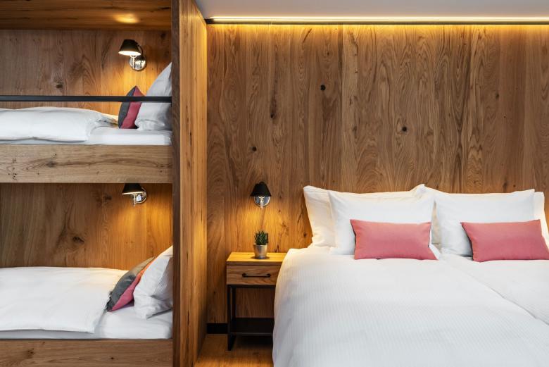 Verteilt auf vier Stockwerke befinden sich 22 Zimmer und eine Suite. Die Sonnenterrasse im Aussenbereich bietet Platz für circa 400 Gäste.