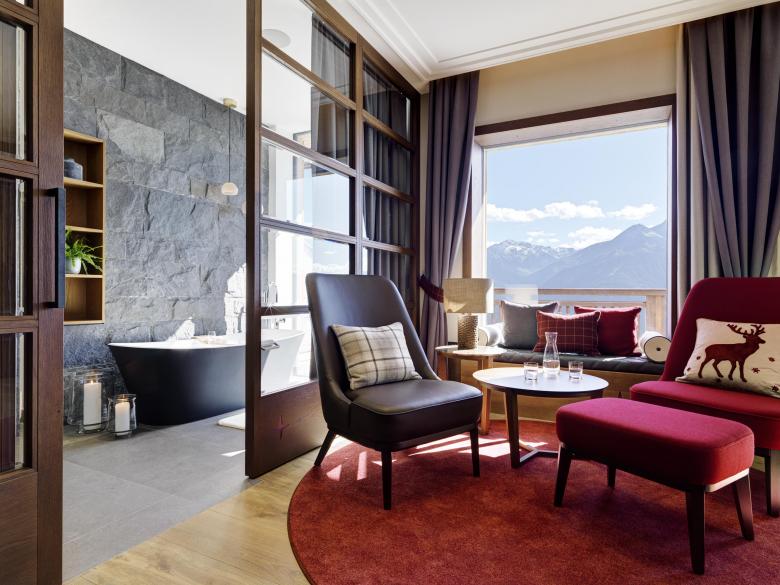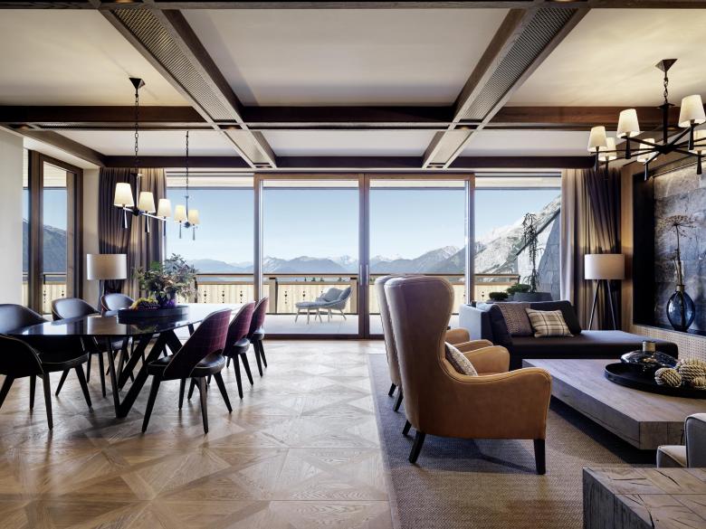 Das Highlight sind die grossen Terrassen mit dem freien Ausblick auf die traumhafte Bergwelt. Und auch im Inneren der neuen Suiten prägt die Landschaft dank grosser Panoramafenster die Atmosphäre.