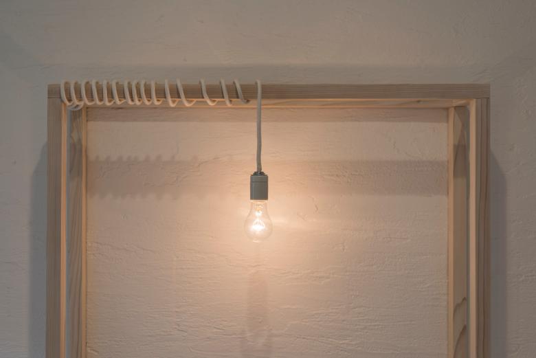 余分な仕上げを外した上で、地元の木材を35mm角に製材し、機能的なボックスフレームのみで構成している。そのフレームは、必要最小限の機能を果たしつつ、リズミカルな空間を生み出している。