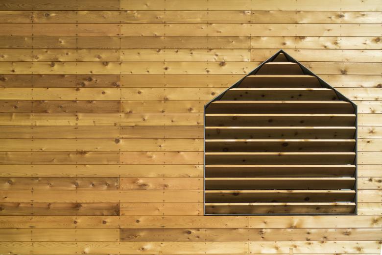 ただ「開放」ではなく「閉じながら開く」という方向性に絞り、外壁面を少し操作することで、解放に転じる方向性を模索することとしている。そこで、採光と通気を得ながら、視線を遮ることができる「ガラリ」という昔ながらの技法。