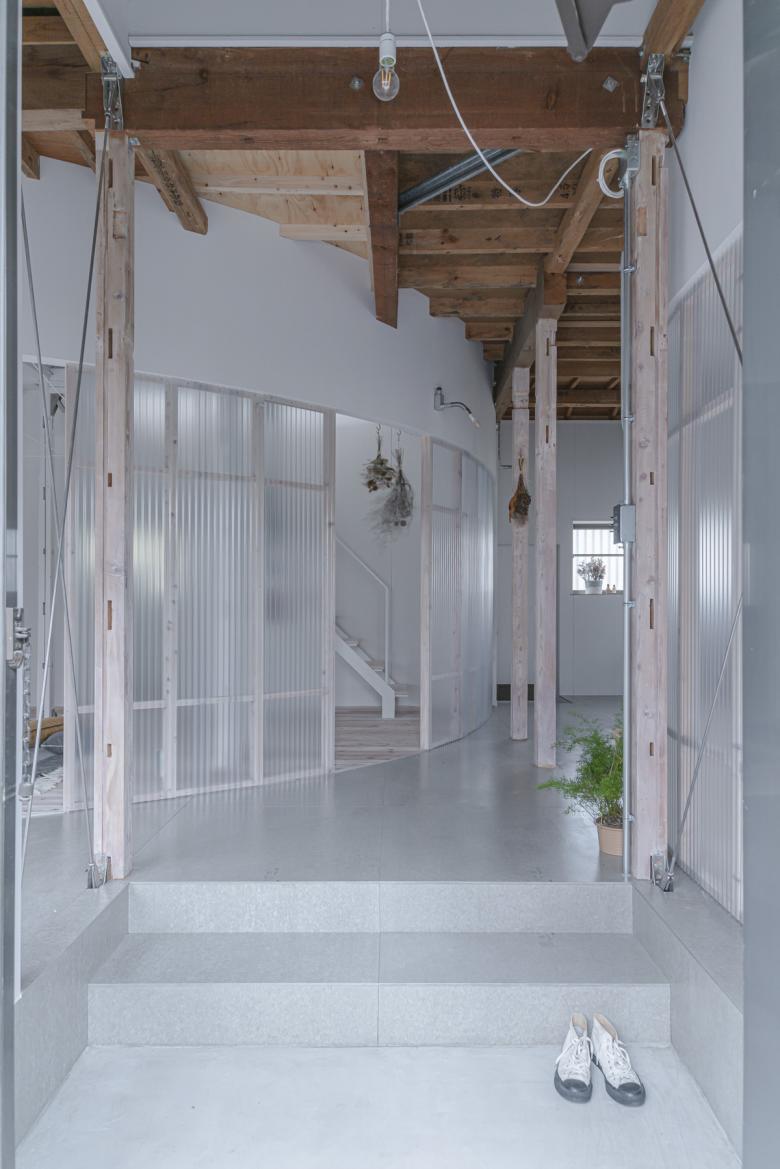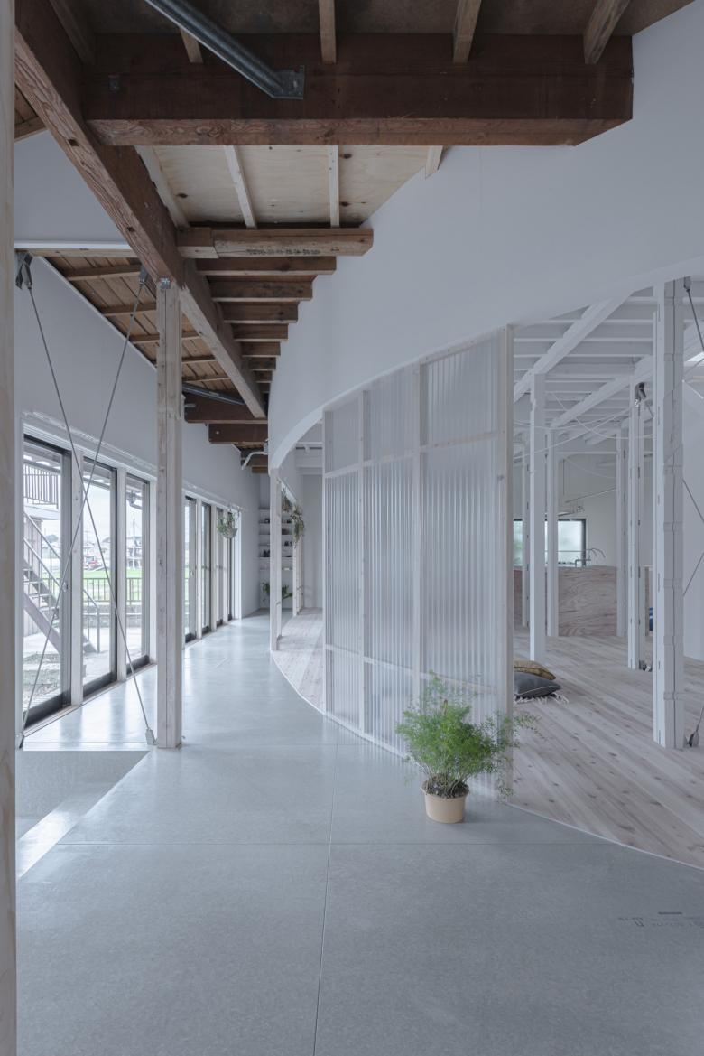 そして、あぜ道を利用する周辺の方々との温かい関係がオマージュのように、建物の中にトレースされた住宅となっている。