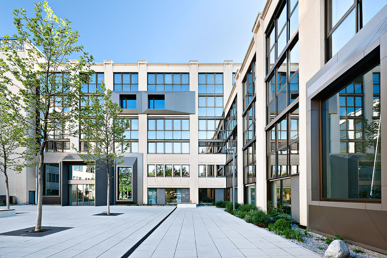 Zugänglichkeiten in Form von neuen, repräsentativen Lobbys wurden neu definiert, eine Adresse gebildet. Deren moderne Gestaltung lehnt sich bewusst nicht an die Vorgaben des Bestandes an. Es stellt ein stilistisches Störelement dar, welches zunächst nicht mit der visuellen Darstellung des Gebäudes korrespondieren möchte. Auf diese Weise soll die Neugier des Betrachters angeregt und zu näherer Auseinandersetzung bewegt werden. Dreidimensionale Fassadenelemente setzen sich vereinzelt über das gesamte Fassadenbild fort und bilden kontrastreiche Akzente zur Bestandssituation. Die Erneuerung der Architektur setzt sich in expressiv anmutenden Eingangsfoyers, sowie öffentlichen Gebäudeflächen, fort. Funktional wird das Gebäude in flexibel nutzbare Einheiten neu aufgeteilt. Durch vielfältige Nutzungskonzepte bildet das Objekt innerhalb des umliegenden Quartiers einen neuen Schwerpunkt, welcher das Gebäude lebendig macht und für künftigen Mieter eine Anziehungskraft bietet. Das Landschaftskonzept ergänzt diesen Anspruch durch eine moderne Formensprache, zahlreiche Durchgänge ermöglichen dem Nutzer eine Durchwegung des Gebäudes in erdgeschossiger Ebene.