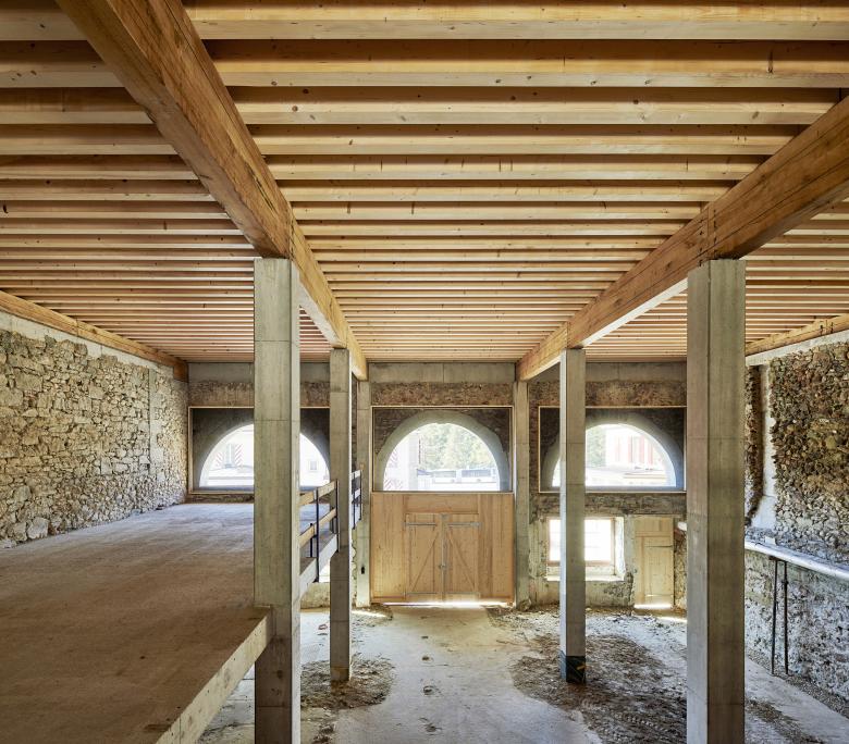 Après l’incendie de 2007, le bâtiment effondré est resté à l’abandon durant plus de dix ans. Grâce au relevé dressé lors d’un projet antérieur, PONT12 pouvait reconstituer l’ancienne charpente : la Commune de Lausanne a commandé une restauration scrupuleuse de ce bâtiment protégé. Le pari était d’investir sans connaître la destination finale, dans l’objectif de susciter l’intérêt pour ce grand volume situé dans un secteur en plein développement.