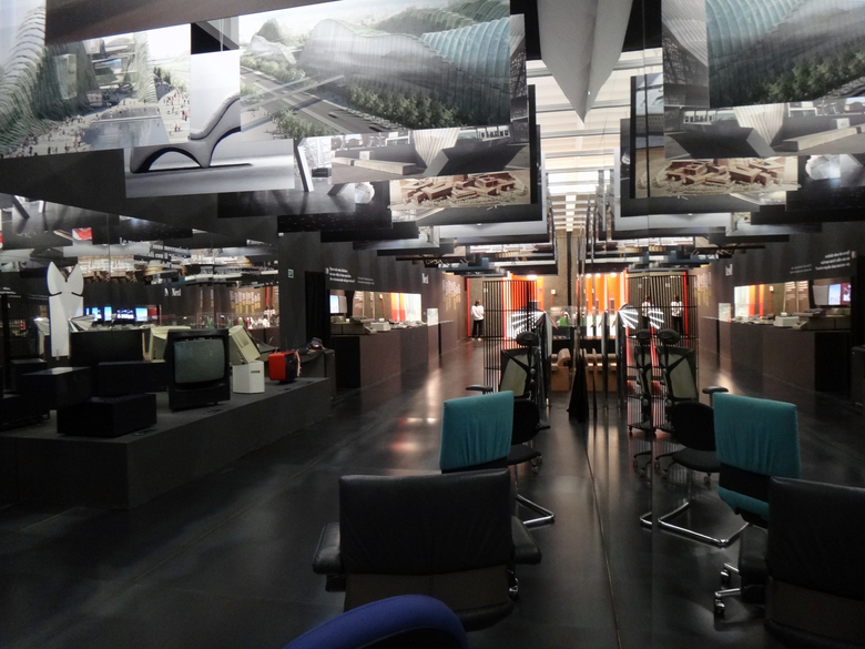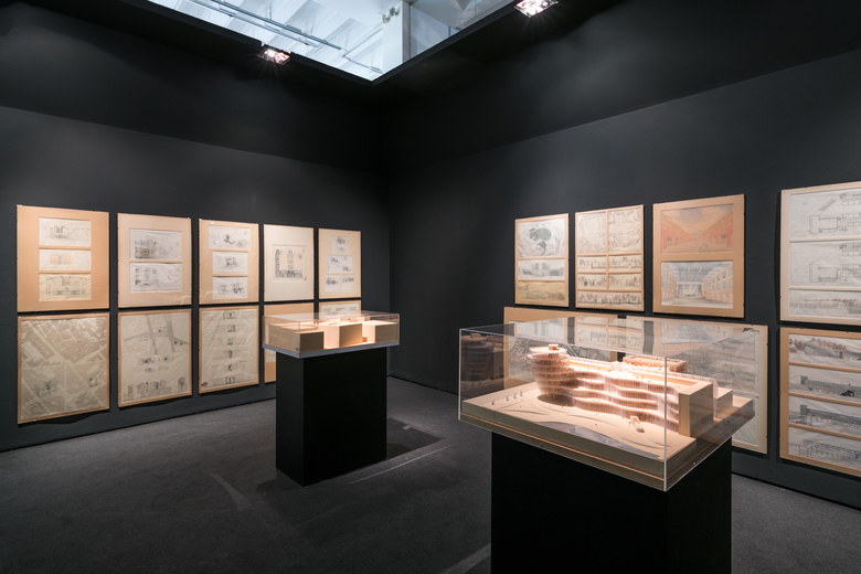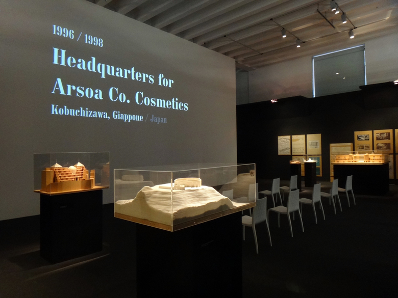In the five rooms, architecture and exhibition displays, which naturally cannot be transported, are illustrated by means of sketches, drawings, models and giant projections. This is the only way of transporting the visitor, almost in audio and visual real time, into buildings dotted around the world.