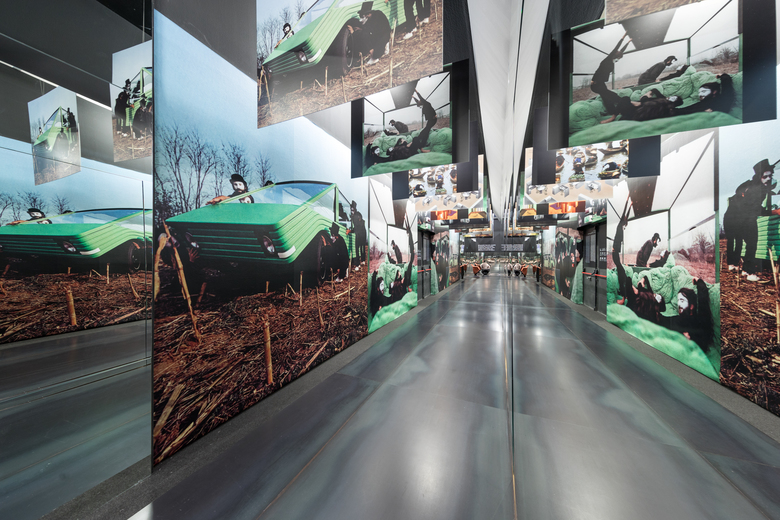 One of the two passageways between the wings of the Gallery contains the Kar-a-sutra, a concept car designed upon the invitation of MoMA in 1972,while the other has a Wunderkammer made by Zetalab with a hundred photographs of objects dear to Mario Bellini.